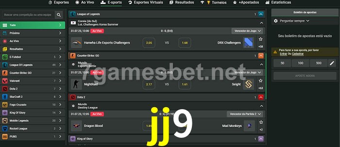 O jj9 oferece uma grande seleção de opções de apostas em e-sports com probabilidades competitivas